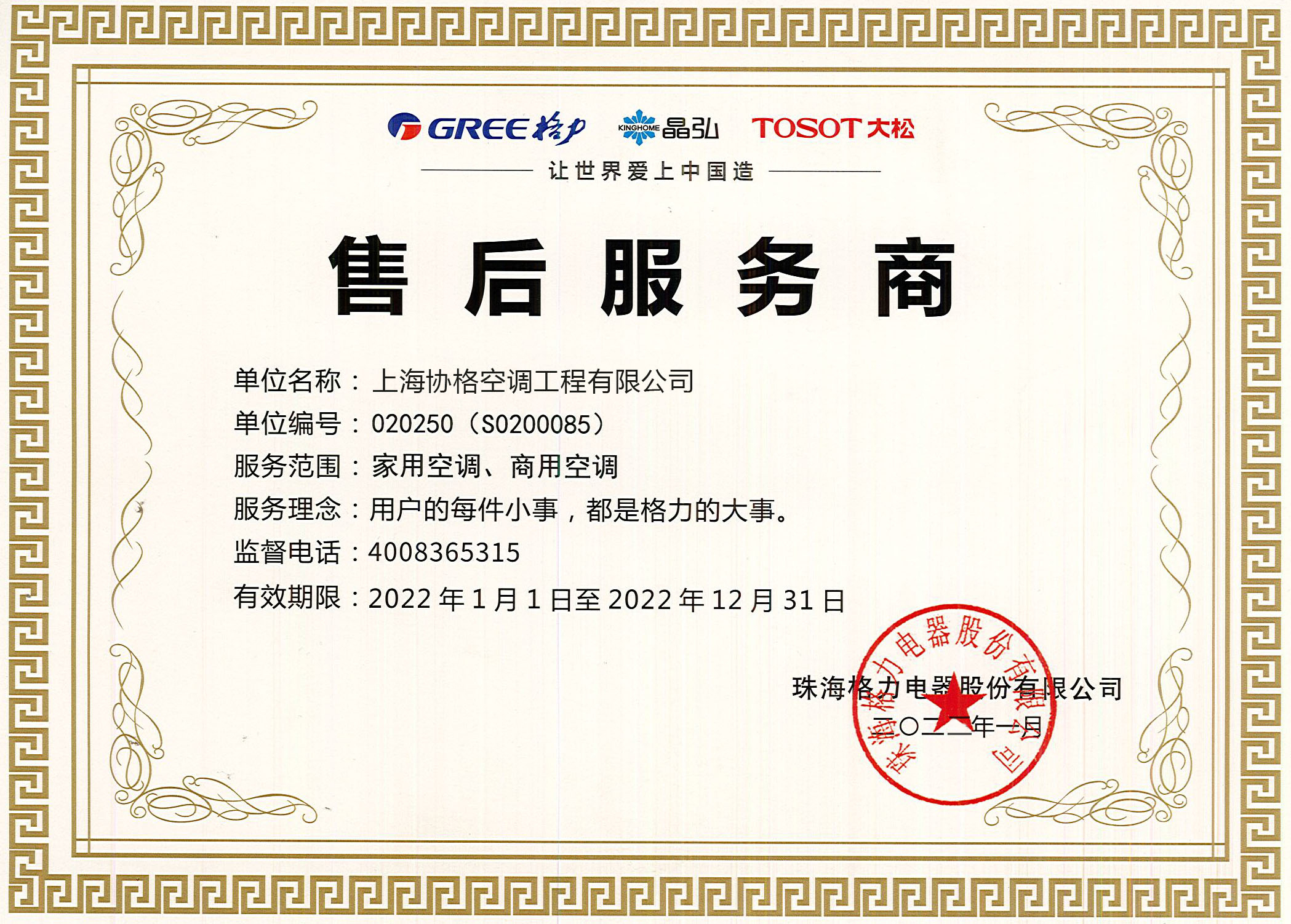 上海協(xié)格機(jī)電科技股份有限公司于2003年成立,是一家專業(yè)從事空調(diào)設(shè)計(jì)、銷售、安裝、維修、保養(yǎng)為一體的家用和商用空調(diào)專業(yè)公司。是格力空調(diào)上海地區(qū)的特約經(jīng)銷商和技術(shù)服務(wù)中心,是上海市家用電器安裝、維修以及資質(zhì)企業(yè)。公司擁有暖通技術(shù)、高級(jí)工程師、工程安裝等多方面專業(yè)人才。公司常年以來堅(jiān)持客戶利益至上的原則,設(shè)計(jì)、選材、安裝,力求精益求精,是上海地區(qū)格力授權(quán)服務(wù)商。
